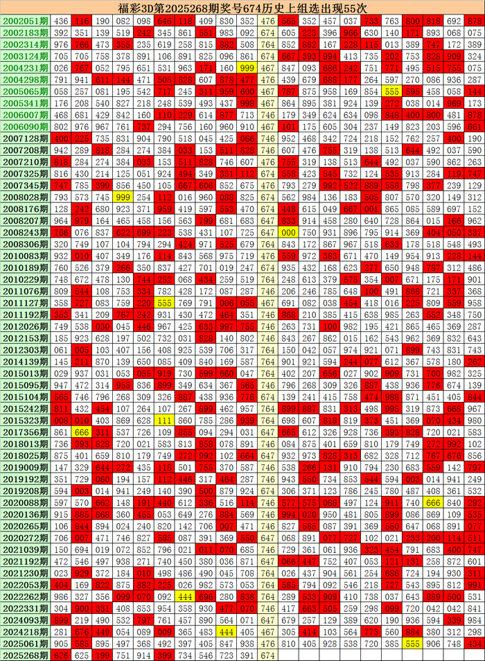 解密:首先,直选674开出之后,10期内开出豹子号0次,2003年-2025年在开出直选674之后,10期内组三累计出现23次,组三在未来第1-5期出现概率为88%,组三在未来5-10期出现的概率为63%。